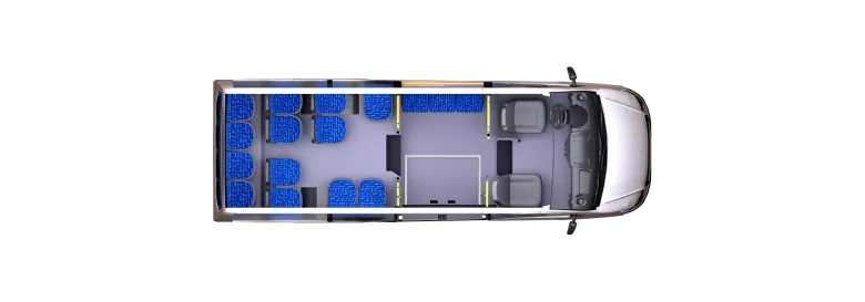 В салоне автобуса Газель CITY с комфортом могут разместиться до 22 пассажиров: 17 в положении сидя, а 5 стоя на просторной накопительной площадке