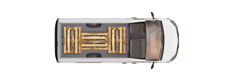 Специальный лючок в перегородке для транспортировки длинномеров и максимального функционального использования пространства грузового отсека.